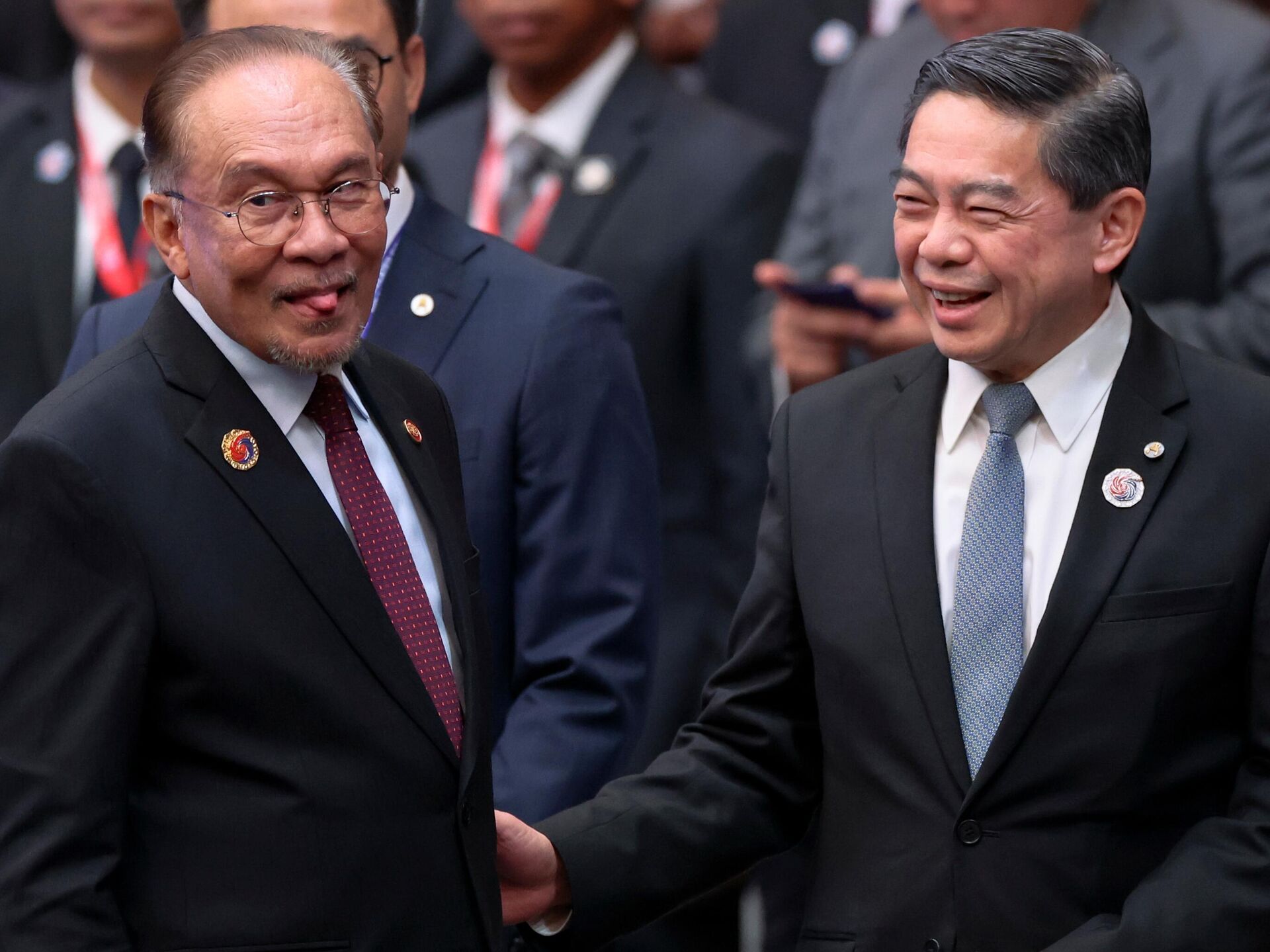 Малайзын Ерөнхий сайд Анвар Ибрахим 2025 оны 10-р сарын 26-нд Малайзын Куала Лумпурт болж буй АСЕАН-ы Япон улсын дээд хэмжээний 28-р уулзалтын үеэр хариу үйлдэл үзүүлж байна. (Chalinee Thirasupa/Pol Photo by AP)