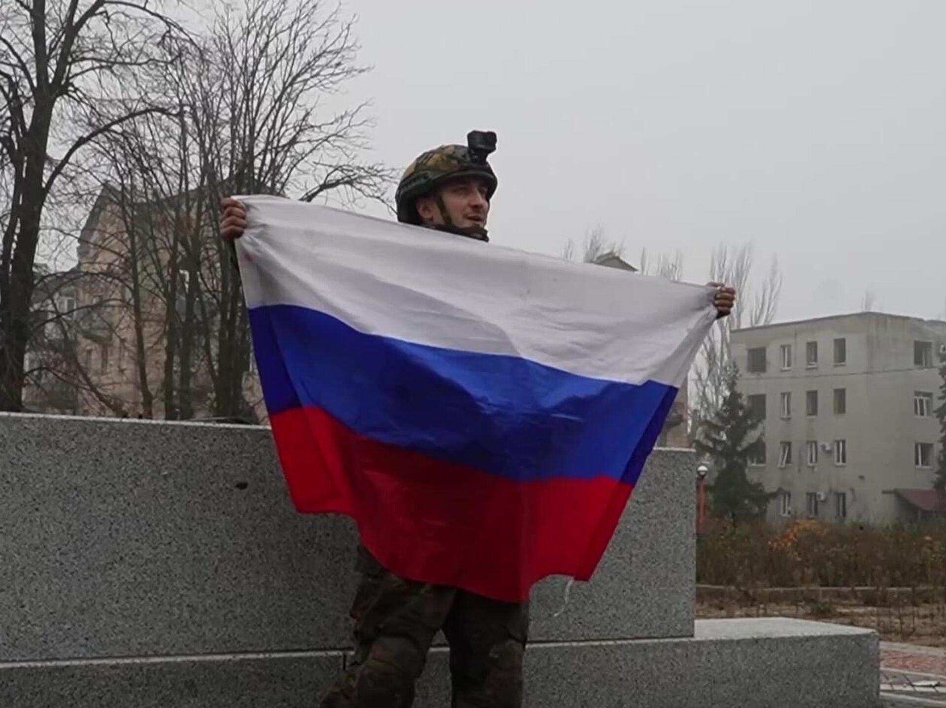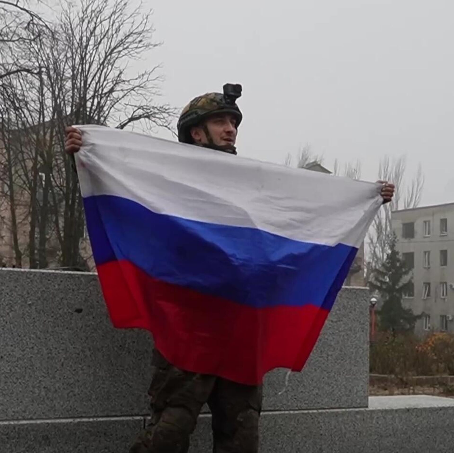БНДАУ дахь чөлөөлсөн Красноармейск (Покровск) хотод нэг цэрэг Оросын тугийг мандуулж байна (Эх сурвалх: ОХУ-ын Батлан хамгаалах яамны видео).